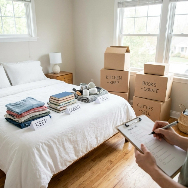 Smart Solution: Start decluttering rooms you use least frequently (guest bedrooms, basements, attics) eight weeks before your move. Tackle one room per week. This gradual approach prevents over- whelm and significantly reduces your moving costs.