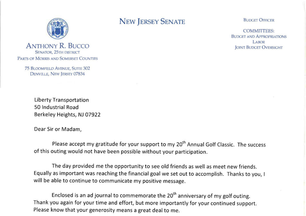 Please accept my gratitude for your support of my 20th Annual Golf Classic. The success of this outing would not have been possible without…